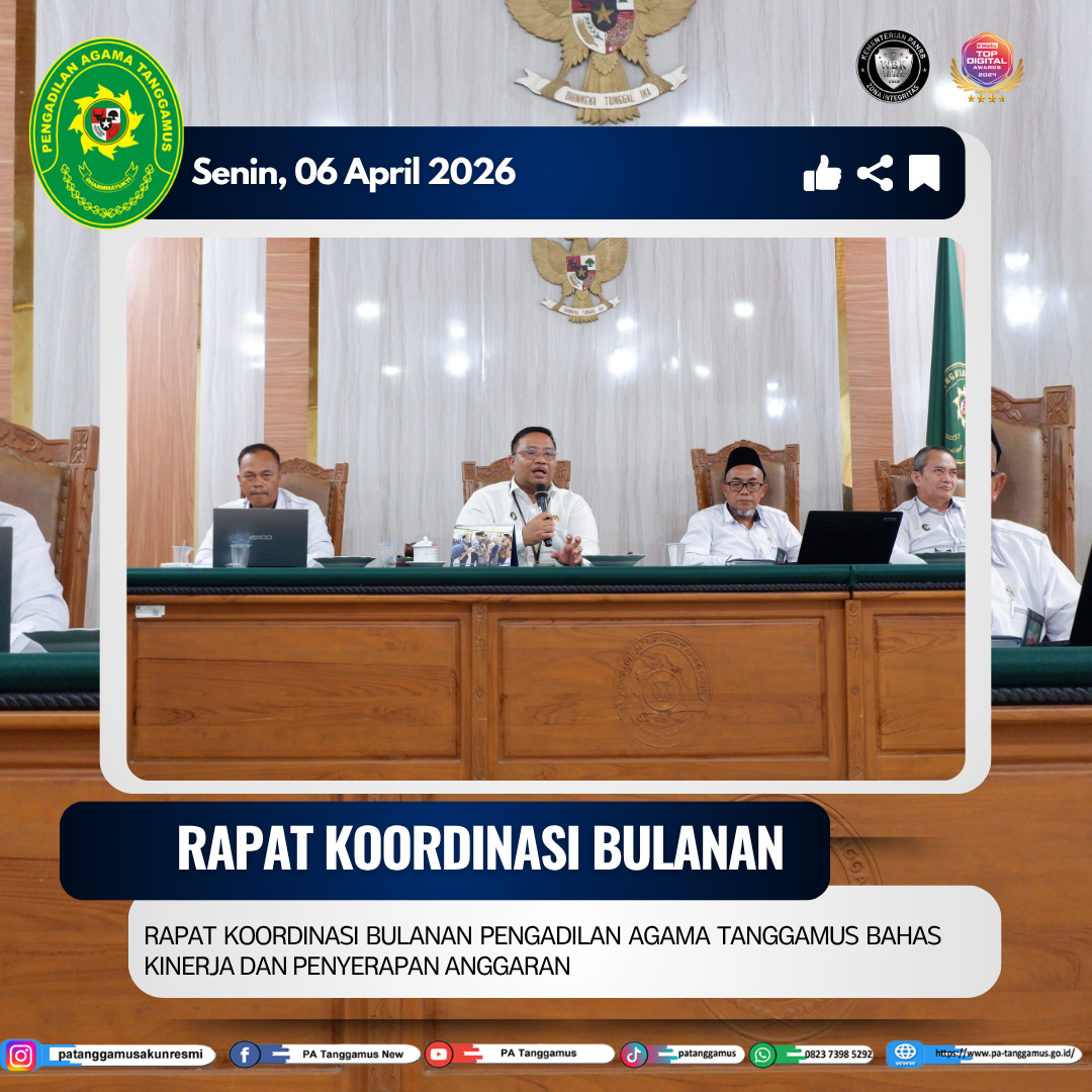 Melalui rapat koordinasi ini, diharapkan seluruh jajaran Pengadilan Agama Tanggamus dapat semakin meningkatkan kinerja, soliditas, dan profesionalisme dalam memberikan pelayanan terbaik kepada masyarakat.
