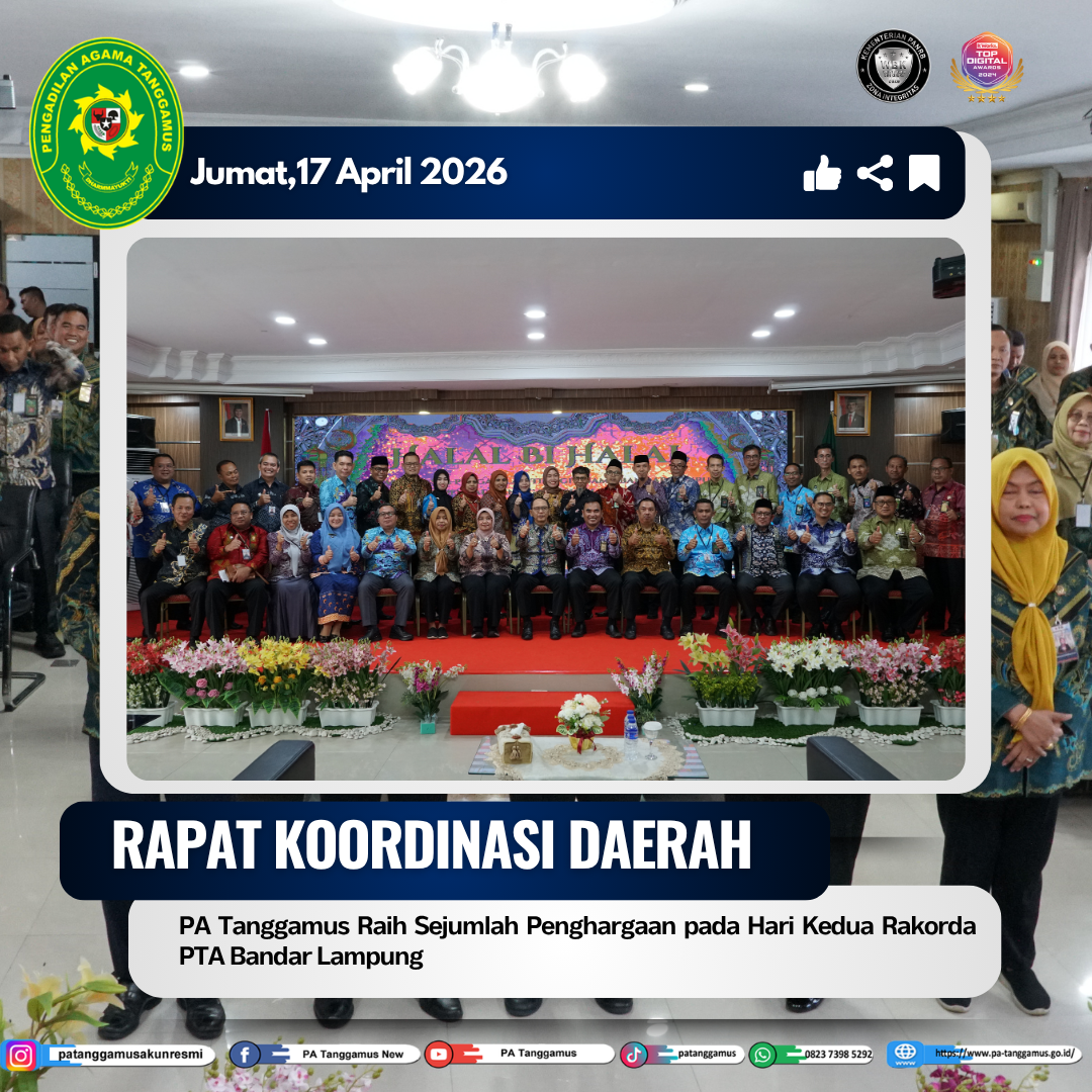 Capaian ini menjadi bukti nyata komitmen pimpinan dan seluruh aparatur PA Tanggamus dalam meningkatkan kinerja dan pelayanan publik, serta diharapkan dapat menjadi motivasi untuk terus memberikan pelayanan yang prima, transparan, dan akuntabel kepada masyarakat pencari keadilan.